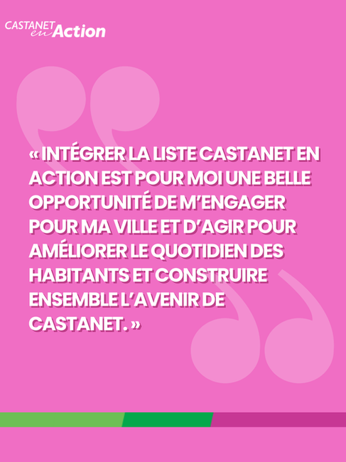 🤝 Intégrer Castanet en Action est pour elle l’opportunité de s’engager pour sa ville, améliorer le quotidien des habitants et construire ensemble l’avenir de