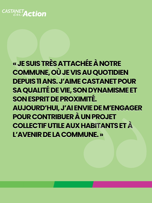 🏡 Castanéenne depuis 11 ans, passionnée par la qualité de vie, le dynamisme et l’esprit de proximité de notre commune.